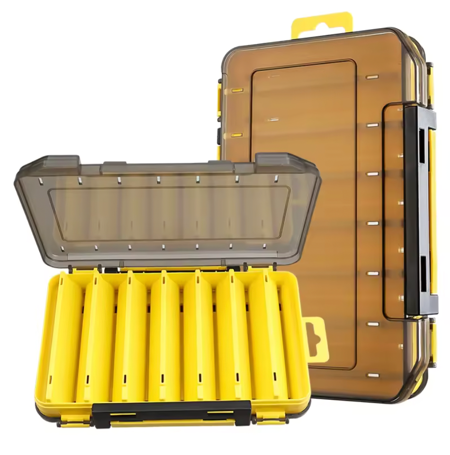 This double-sided fishing tackle box is designed to keep your lures organized and easy to access. It features 14 total slots, with 7 compartments on each side, providing plenty of space for storing lures, spoons, or small tackle. The secure snap-lock lids help keep your gear in place, while the durable plastic construction offers long-lasting performance. Compact and lightweight, it’s perfect for staying organized on the water or on the go.