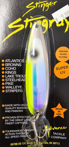 Michigan Stinger Stingray Spoons come in bright, reflective colors, including new UV colors for high visibility in deep and dark waters. These spoons feature a thin, slightly curved design to give them a fish-attracting flutter action. Colorful Stingray Spoons were originally designed for walleye, but they have gained tremendous popularity with trout and salmon anglers. These spoons are great for freshwater trolling applications. Stinger Stingray Spoons have proven effective in the spring for browns and coho off planer boards, as a slider off downriggers, or any time small baitfish are encountered.
