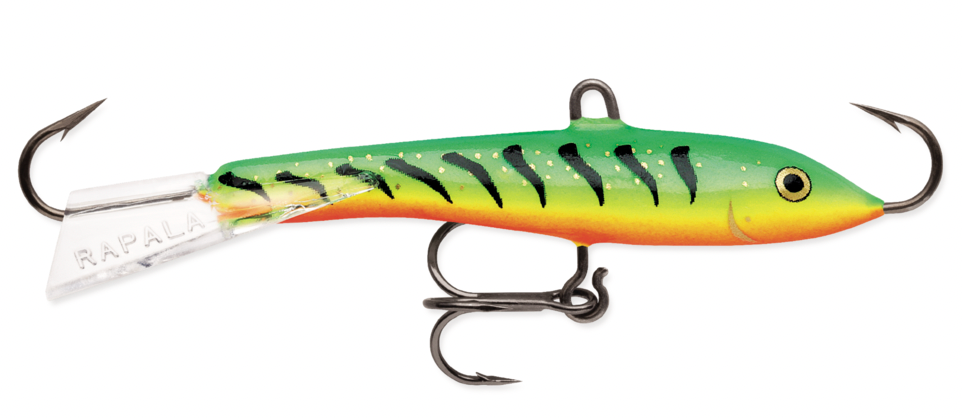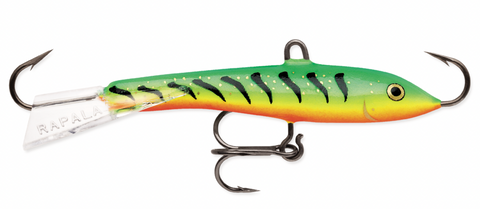 Swimming in tantalizing circles under the ice or in open water for suspended game fish, the Jigging Rap® features a balanced, weighted minnow profile. Single reversed hooks with center treble and eyelet, this bait can also be bottom bounced, yo-yo style off the bottom with unbeatable results. Wide range of sizes is complimented with natural and glow color patterns.