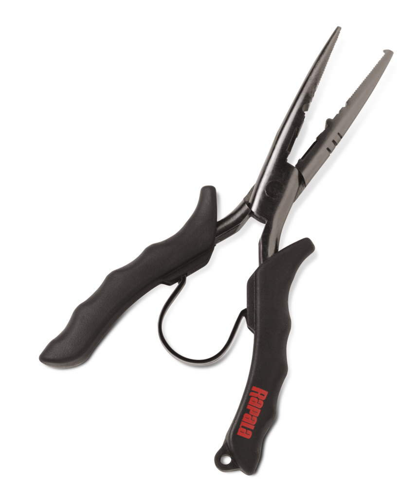 More than just a pair of pliers, this tool is packed with features. Includes side cutter for cutting thin wire leaders and hooks, Rapala lure tuning tool and split shot crimper. Nose features split ring tool for making fast work of changing out or updating hooks in the field. Soft grip handles add comfort and slip proof grip. Leaf spring opens pliers for one-handed operation with adjustable hand lanyard to keep them secure.