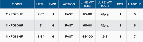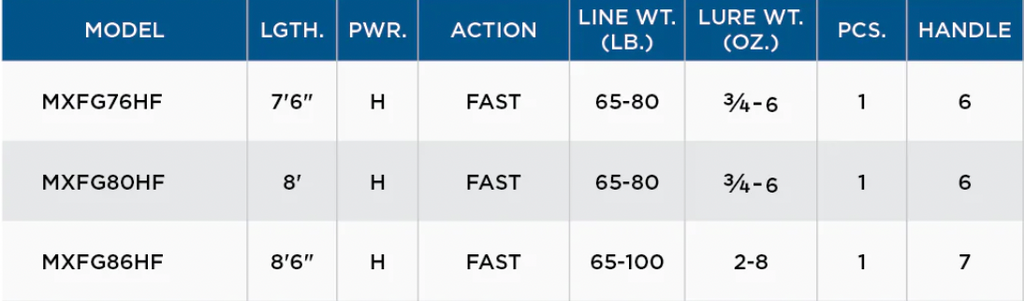 • 18 casting models (9 full-grip & 9 split grip) optimized for every high-performance musky presentation